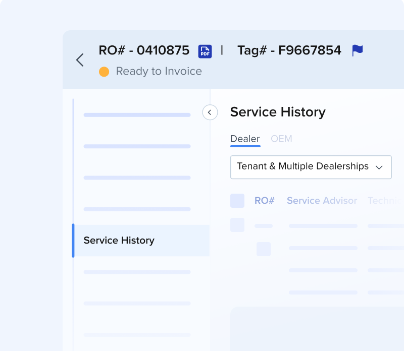 Service history now includes a PDF icon next to RO numbers that instantly opens the associated customer invoice PDF in a new tab. This streamlines access to important documentation without requiring users to navigate into individual repair orders.