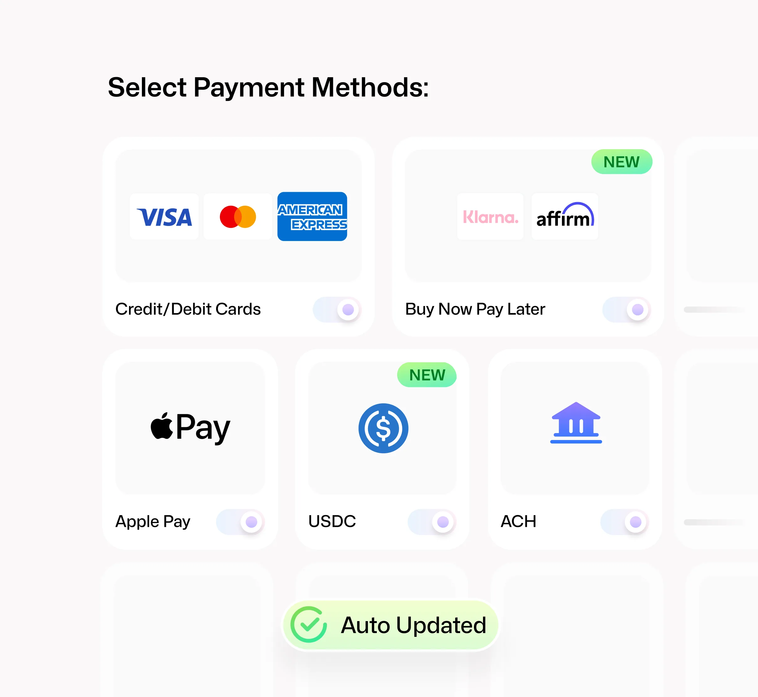 Accept every major payment method through a single, unified integration.